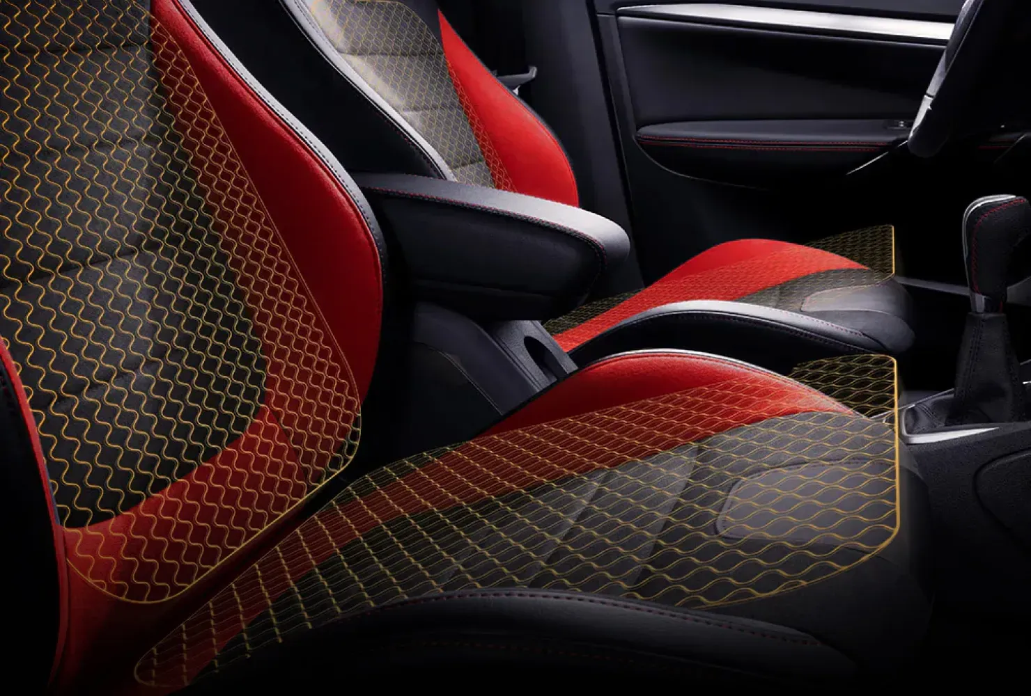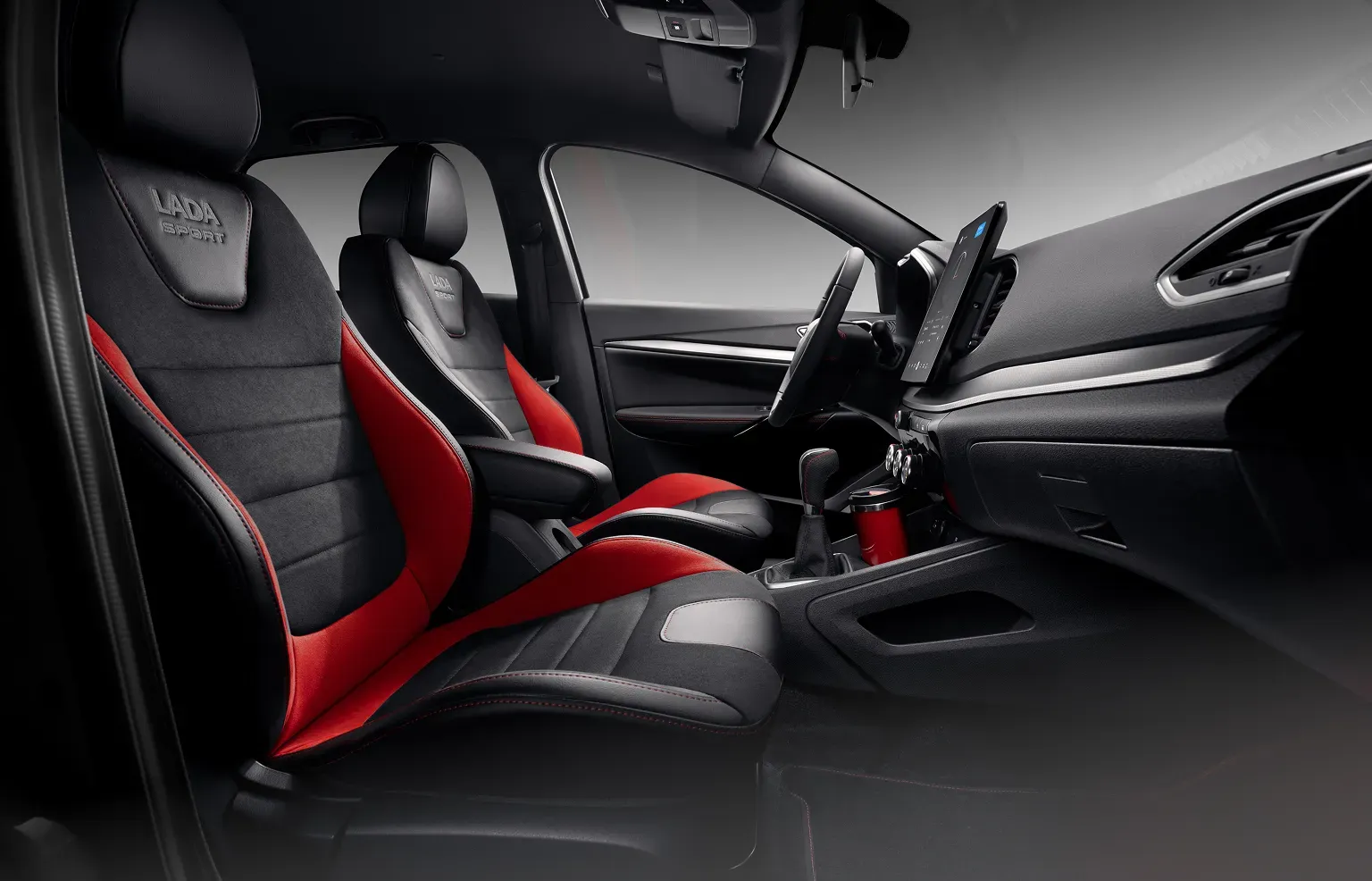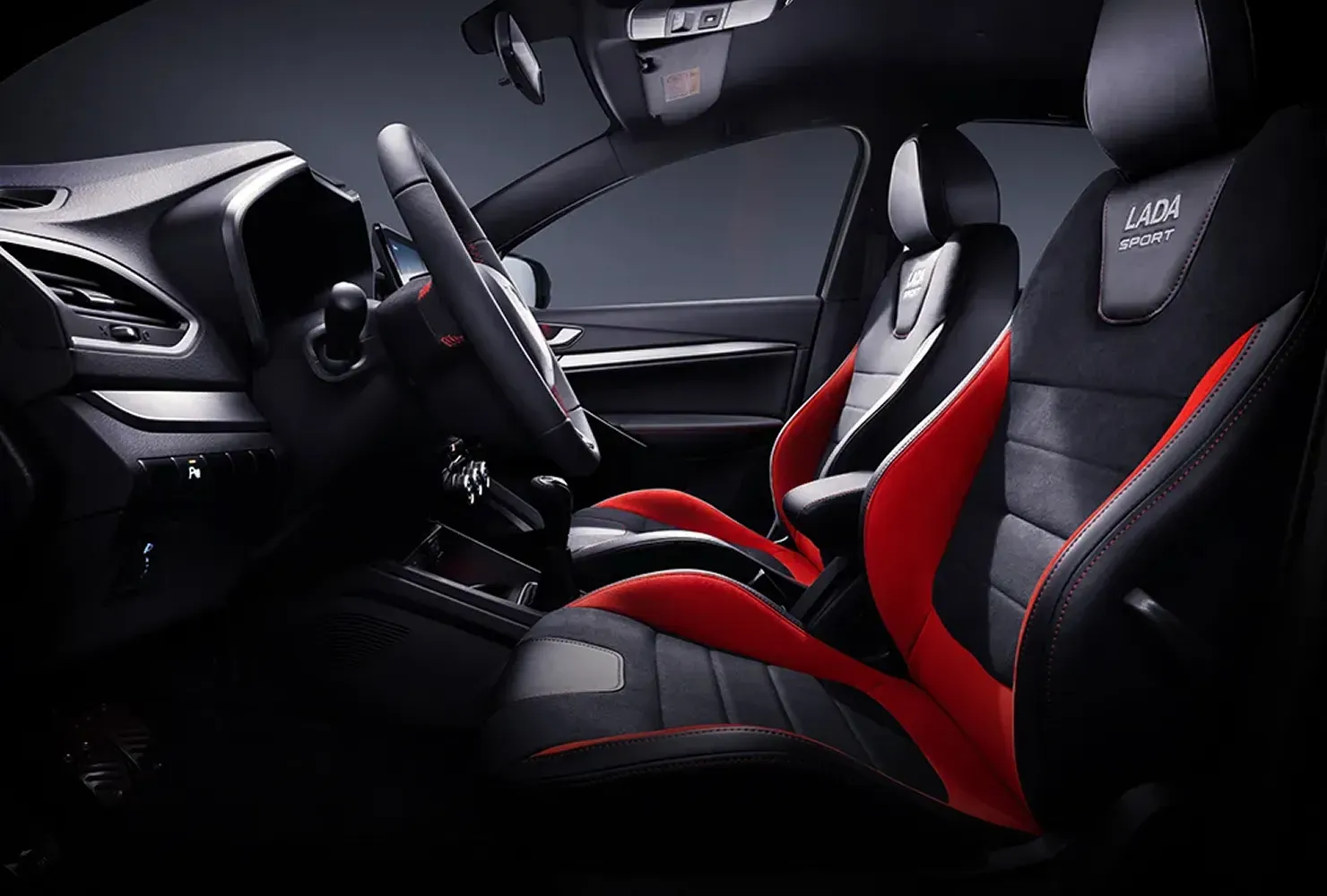 Красно-черная отделка — фирменная черта линейки Спорт. Яркие вставки на сиденьях сочетаются с красной строкой на оплетке руля и рычага КПП. Передние кресла с выраженной боковой поддержкой — это плюс к спортивному стилю и к контролю автомобиля в стремительных виражах.