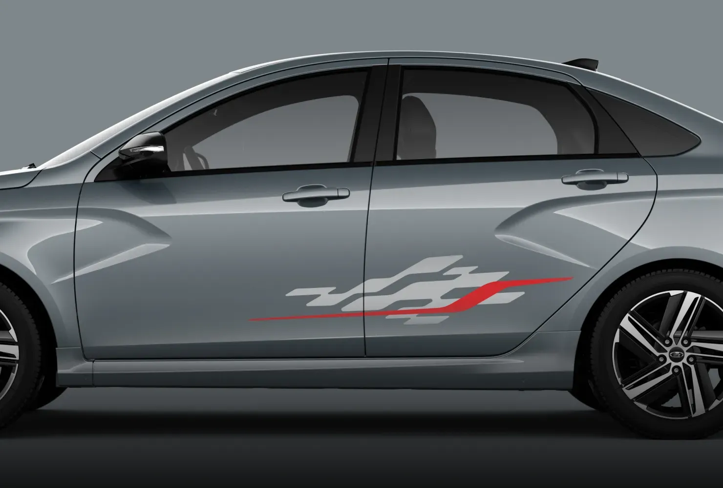 На два сантиметра ниже, на два сантиметра шире. Уже это изменение характеристик меняет пропорции и впечатление от автомобиля: он стал более приземистым и хищным. Добавляют спортивности дизайну крупные колеса с динамичным рисунком спиц, аэродинамический обвес и контрастные наклейки на боковины. Несколько вариантов наклеек — чтобы каждый мог сделать свою Vesta Sport еще более уникальной.